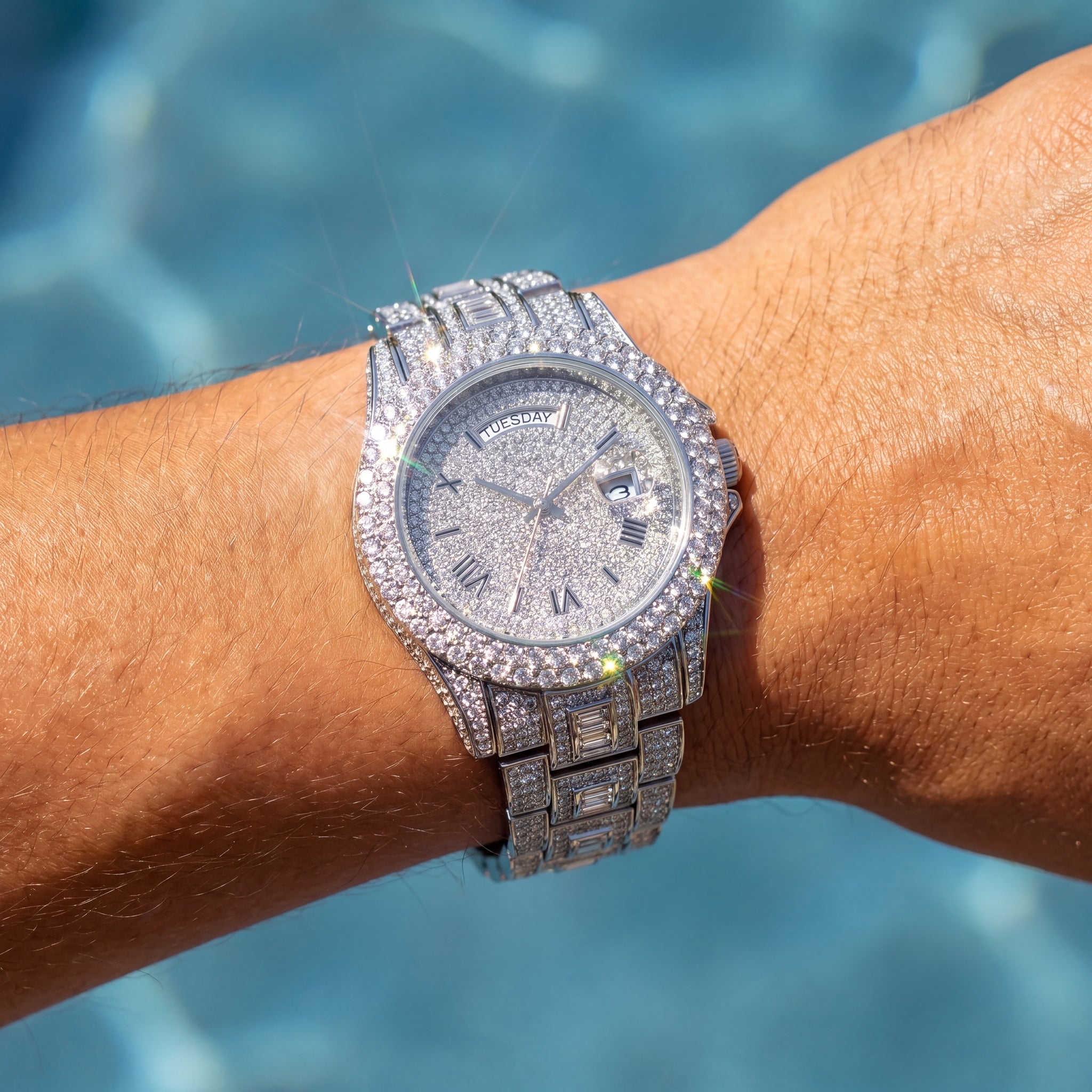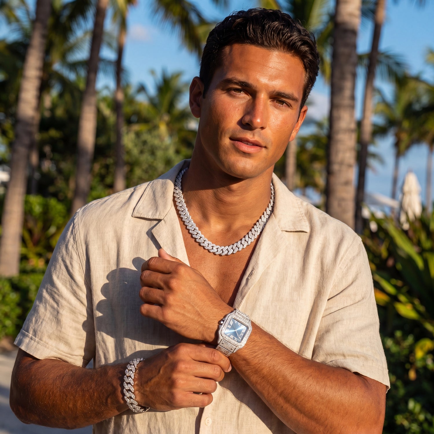 Unser iced-out Schmuck besticht durch funkelnde Diamanten und hochwertige Materialien, die jedes Stück zu einem luxuriösen Highlight machen. Mit seinem einzigartigen Glanz und Stil setzt er ein Statement von Eleganz und Exklusivität.