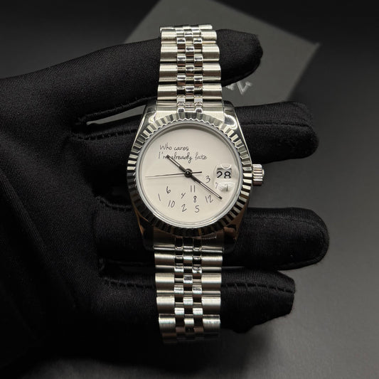 EDELSTAHL AUTOMATIK 36MM/39MM "WHO CARES I´M ALREADY LATE" UHR