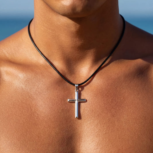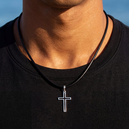 925S SILVER SCHWARZE LEDER "CROSS" KETTE