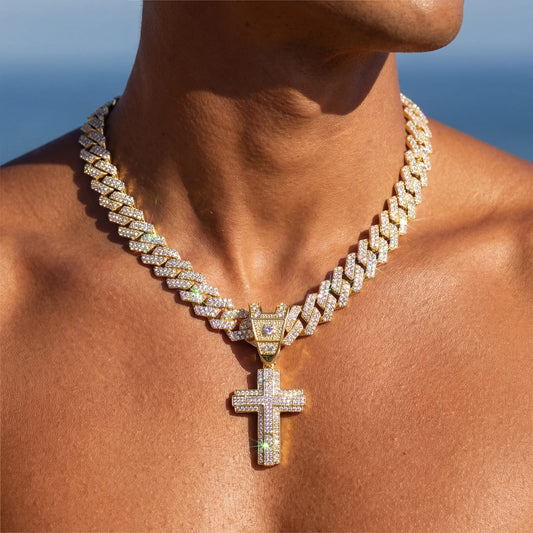 ICED OUT "GOLD PRONG CUBAN CROSS" KETTE