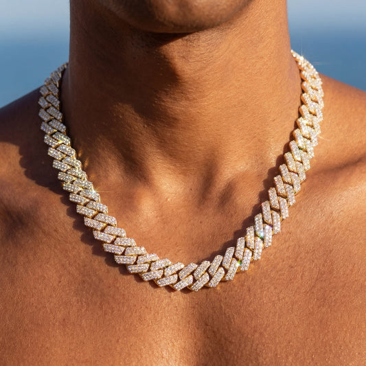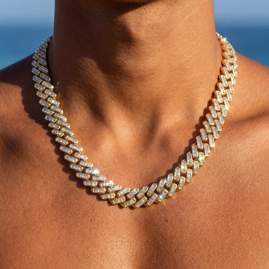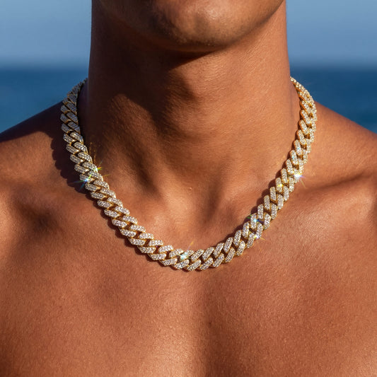 FRÜHLINGS-SALEZIRKONIA DIAMANTEN BESTSELLERICED OUT 14MM "GOLD PRONG CUBAN" KETTE [CLASSIC VERSION]
