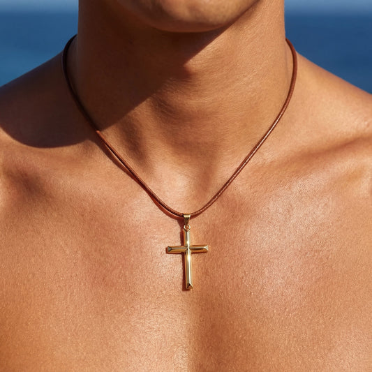FRÜHLINGS-SALE925 STERLING SILBER 18K GOLD LEDER925S SILVER 18K GOLD BRAUNE LEDER "CROSS V2" KETTE