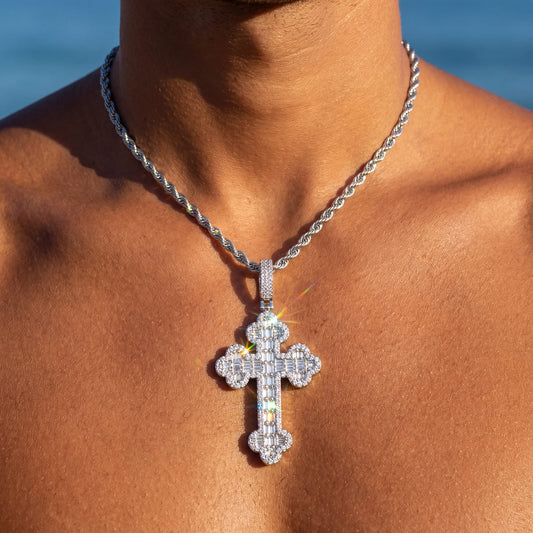 ICED OUT "SILVER PRONG CUBAN CROSS" KETTE