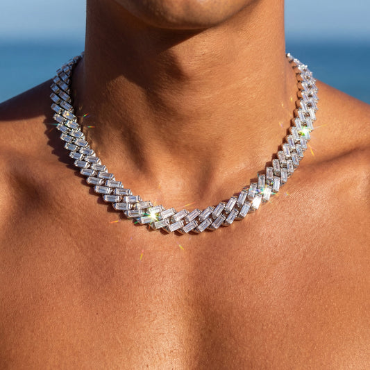 FRÜHLINGS-SALEZIRKONIA DIAMANTEN BESTSELLERICED OUT 14MM "SILVER PRONG CUBAN" KETTE [CLASSIC VERSION]