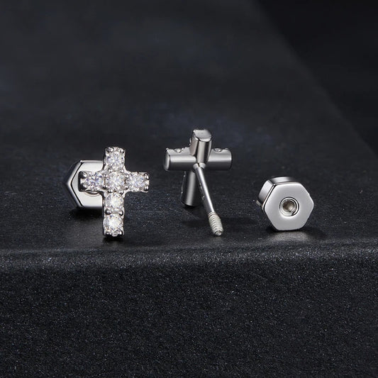 NEUJAHRS-SALEMOISSANITE DIAMANTEN 925 STERLING SILBERICED OUT MOISSANITE "CROSS V2" WEISSGOLD 925S SILVER OHRRINGE