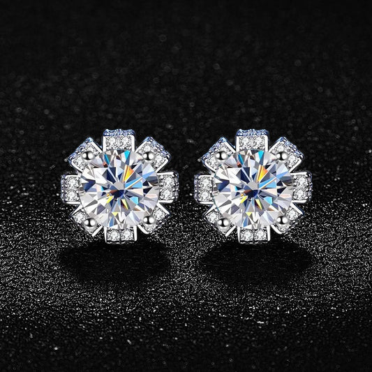 NEUJAHRS-SALEMOISSANITE DIAMANTEN 925 STERLING SILBERICED OUT MOISSANITE "FLOWER" WEISSGOLD 925S SILVER OHRRINGE