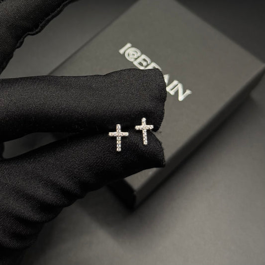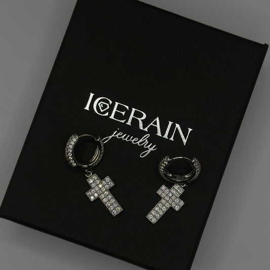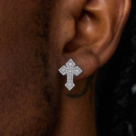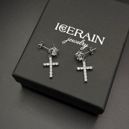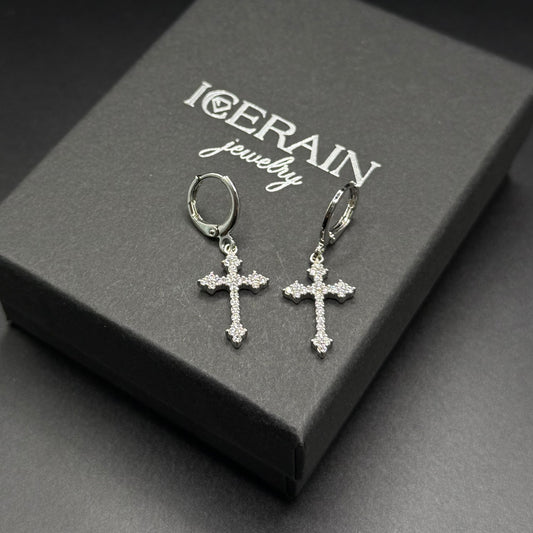 ICED OUT "SILVER CROSS" OHRRINGE