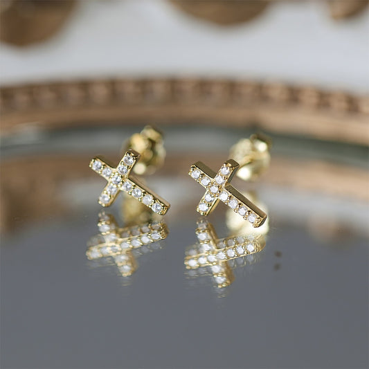 ICED OUT "GOLD MINI CROSS" OHRRINGE