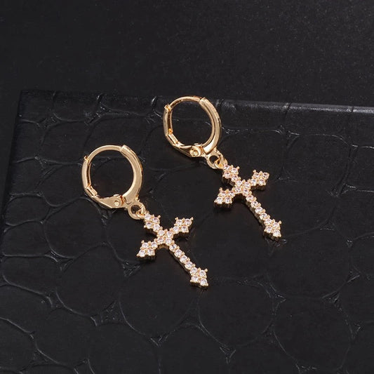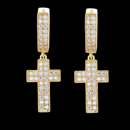 ICED OUT "GOLD CROSS" OHRRINGE