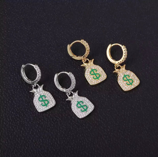 ICED OUT "GOLD CASHBAG" OHRRINGE