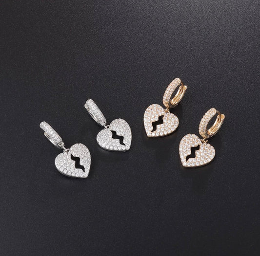 ICED OUT "SILVER BROKEN HEART" OHRRINGE