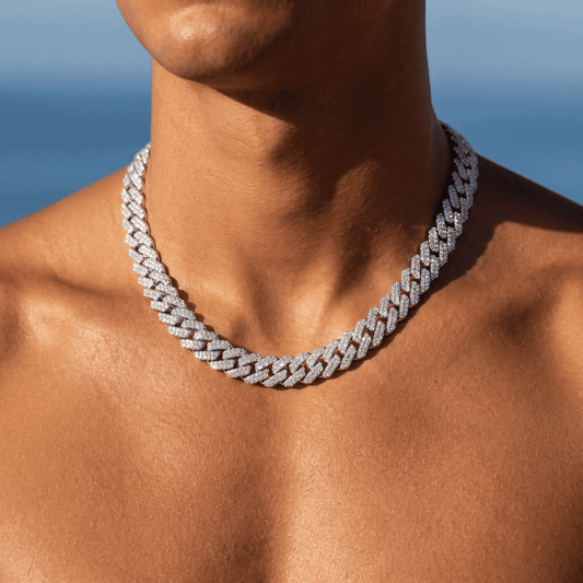 FRÜHLINGS-SALEZIRKONIA DIAMANTEN BESTSELLER SALESALE | ICED OUT 14MM 50CM "SILVER PRONG CUBAN" KETTE [CLASSIC VERSION]