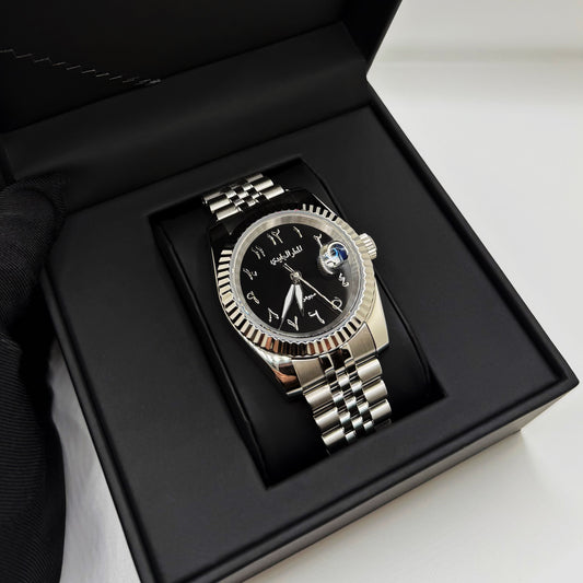 EDELSTAHL AUTOMATIK "BLACK ICERAIN (المطرالجليدي) ARABIC" UHR