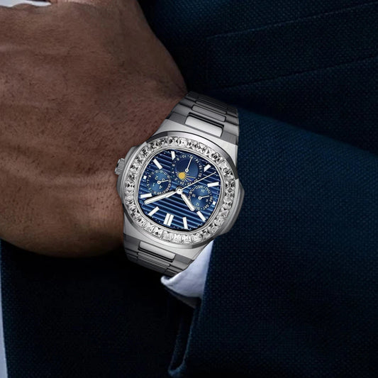 EDELSTAHL AUTOMATIK "MIDNIGHT BLUE PATTERY" UHR