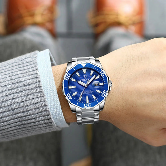 EDELSTAHL AUTOMATIK "BLUE PATTERY" UHR
