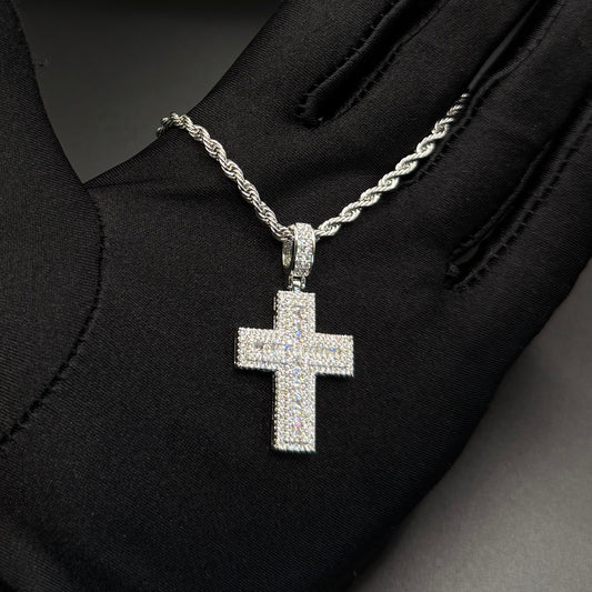ICED OUT "SILVER PRONG CUBAN CROSS" KETTE