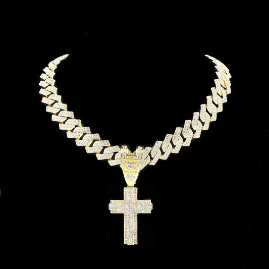 ICED OUT "GOLD PRONG CUBAN CROSS" KETTE
