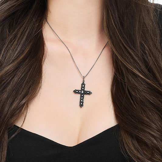 925S SILVER SCHWARZE LEDER "CROSS" KETTE