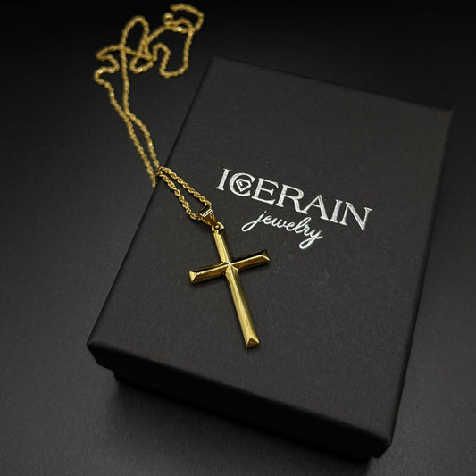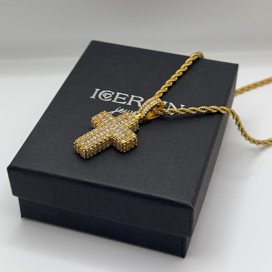 ICED OUT "GOLD PRONG CUBAN CROSS" KETTE