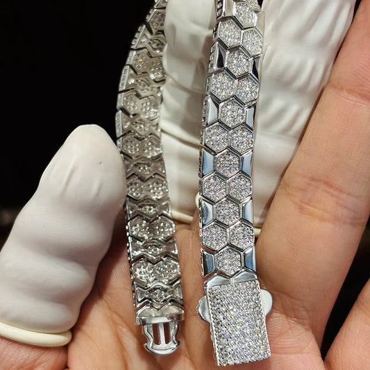 SaleMOISSANITE DIAMANTEN 925 STERLING SILBERICED OUT MOISSANITE "HEXED" WEISSGOLD 925S SILVER ARMBAND