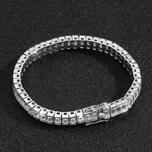 SaleMOISSANITE DIAMANTEN 925 STERLING SILBERICED OUT MOISSANITE "BLACK SQUARE TENNIS" WEISSGOLD 925S SILVER ARMBAND