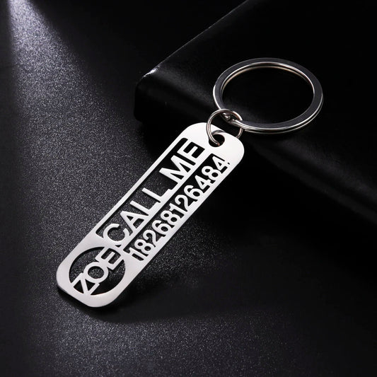 PERSONALISIERTER EDELSTAHL "CALL ME" SCHLÜSSELANHÄNGER