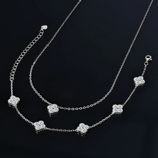 SaleMOISSANITE DIAMANTEN 925 STERLING SILBERICED OUT MOISSANITE 3-IN-1 "CLOVER" 925S SILVER SCHMUCKSET (HALSKETTE + ARMBAND + OHRRINGE)