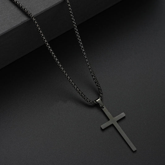 EDELSTAHL 3-IN-1 "BLACK CROSS" SCHMUCKSET (HALSKETTE + ARMBAND + RING)
