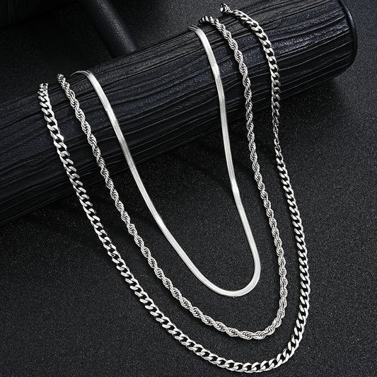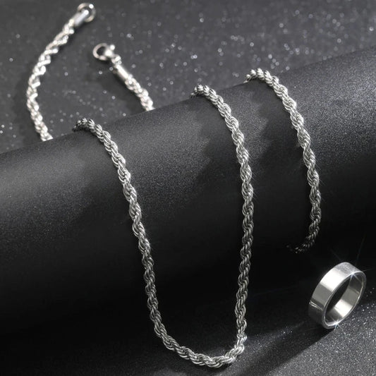 EDELSTAHL 4MM 3-IN-1 "SILVER ROPE" SCHMUCKSET (HALSKETTE + ARMBAND + RING)