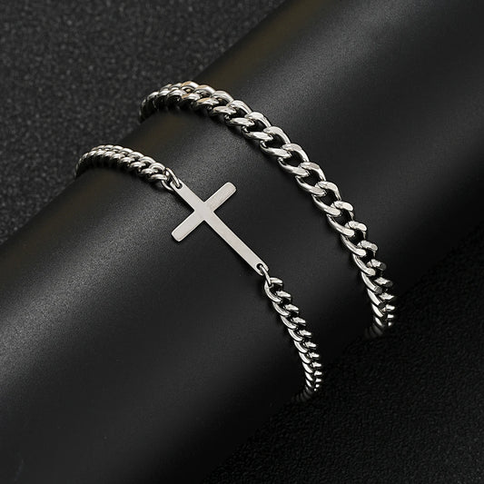 EDELSTAHL 2-IN-1 "CUBAN CROSS" SCHMUCKSET (2 ARMBAND)